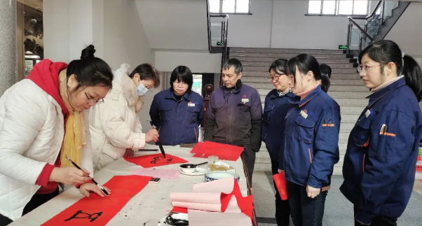 此次活動(dòng),公司邀請(qǐng)了來自市書法協(xié)會(huì)的書法老師們蒞臨現(xiàn)場(chǎng),展示書法藝術(shù)精髓,弘揚(yáng)中國特色的傳統(tǒng)民間文化?!按猴L(fēng)浩蕩展鴻圖、虎步奔騰開勝景”、“茶緣廣裕業(yè)有孚、新程奮進(jìn)正當(dāng)時(shí)”......老師們妙筆生花,一對(duì)對(duì)喜氣的虎年春聯(lián)、年畫,烘托出濃濃年味;一句句美好的祝福,伴著墨香暖人心扉。上洋家人們趁工作休息間隙紛紛前來挑選心儀的虎年春聯(lián)、年畫,與老師們合影留念,現(xiàn)場(chǎng)一片溫馨祥和的喜慶氣氛。
